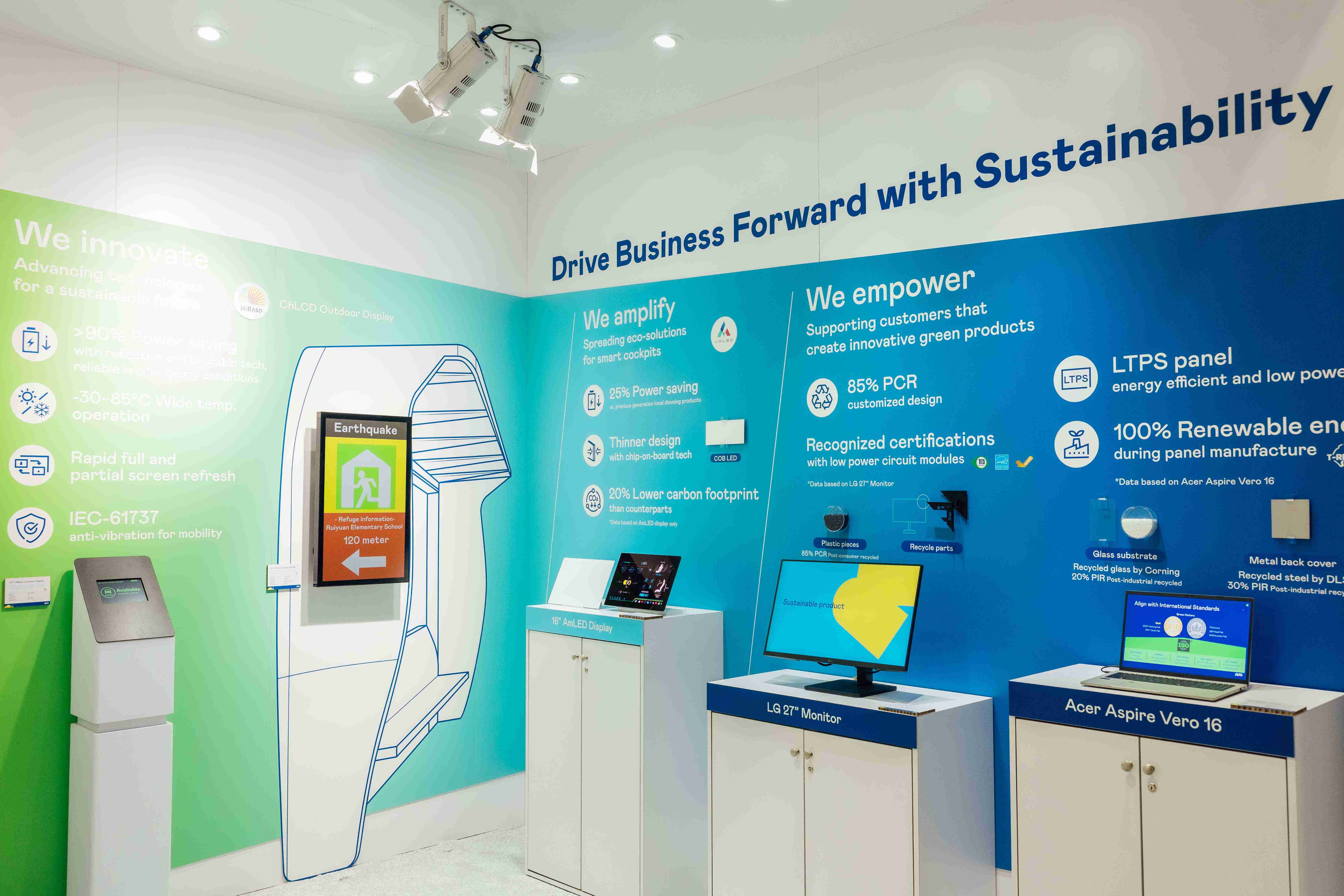 2121非凡运用创新显示技术HiRaso胆固醇液晶双稳态技术达到显示零耗能、、、、扩大节能省电的AmLED显示技术应用于车用产品、、以再生的消费后回收(PCR)塑料及全绿电生产之面板,,应用于笔电及萤幕,,,,增加绿色价值。。。