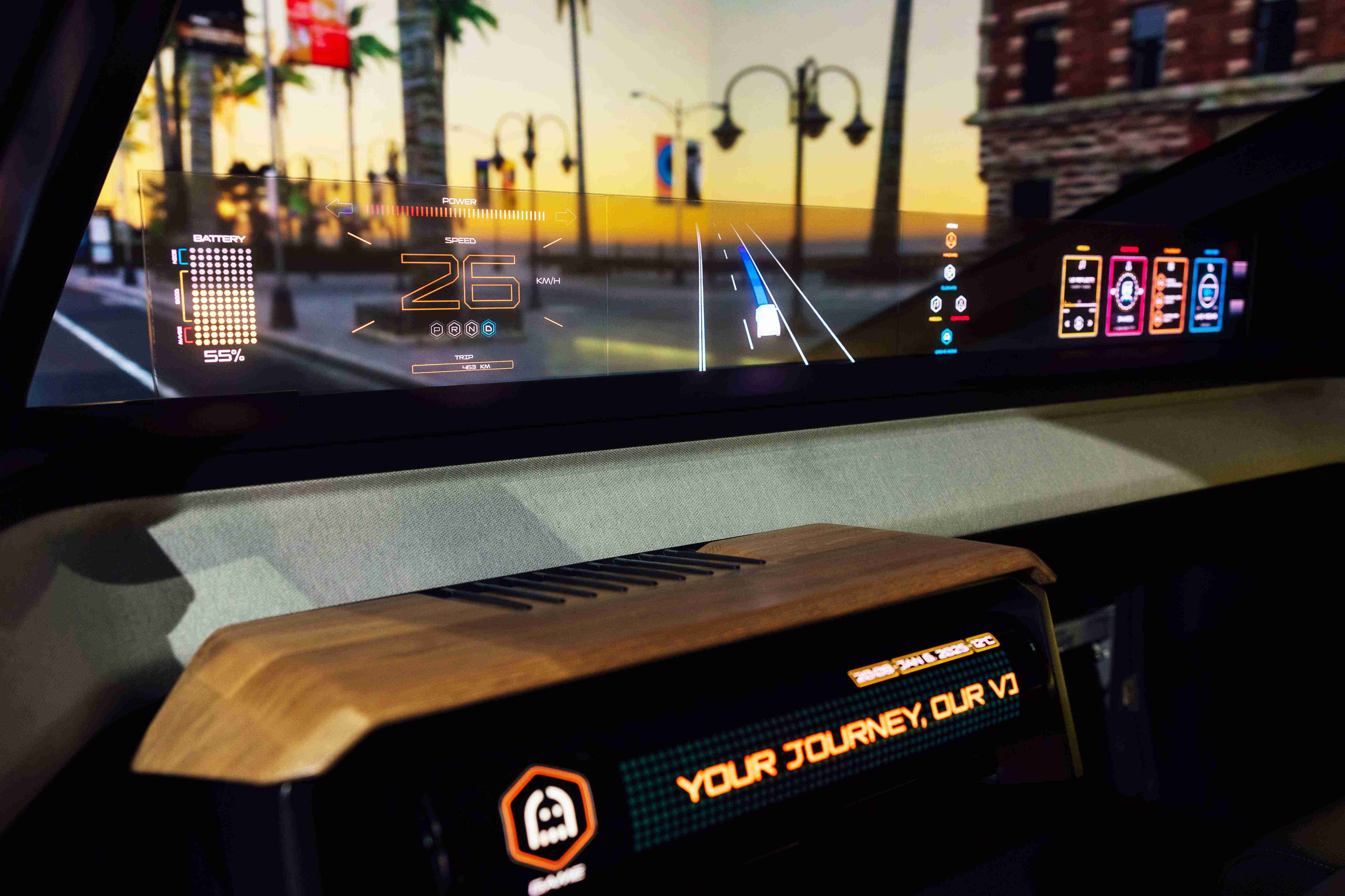 幻境全景天幕(Virtual Sky Canopy)将无缝拼接大型化的透明Micro LED显示器融入至天窗,,,,带来沉浸式体验,,,将人机介面扩展至整个座舱。。。