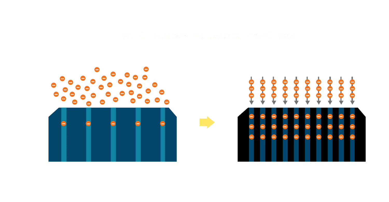 • 多条电极栅结构,,,可有效降低外力对于电池的影响,,,限制电池隐裂 (Micro-cracks) 范围,,防止电流传输路径 (Current distribution) 之损坏进一步扩大。。。